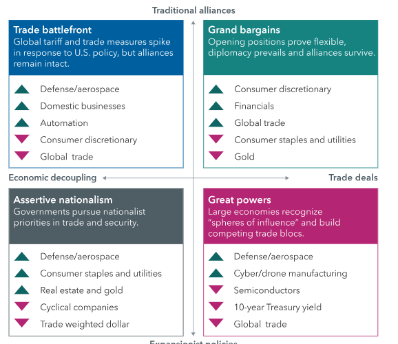 La reciente reanudación de las hostilidades en Oriente Medio ofrece una señal reveladora: ni el dólar ni los bonos del Tesoro han actuado como refugios, a diferencia de episodios anteriores. Tanto el índice DXY como el S&P 500 han caído a la vez, lo que sugiere que muchos inversores están reequilibrando sus carteras. Como apunta el equipo Night Watch de Capital Group —formado por economistas, analistas políticos y gestores—, el entorno actual obliga a abandonar predicciones únicas y planificar con base en escenarios múltiples: desde una guerra comercial con inflación y riesgo de recesión, hasta un repunte impulsado por acuerdos rápidos. Esta diversidad refuerza la necesidad de carteras flexibles, capaces de adaptarse a un mundo en transición.