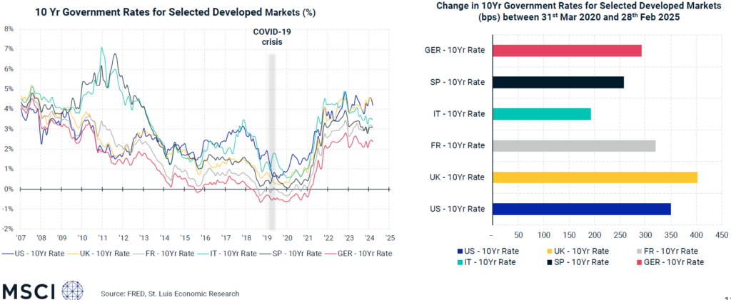 En MSCI atribuyen este cambio a que los inversores, y más concretamente, los grandes inversores institucionales, son conscientes de que el coste de capital es muy alto, el coste del servicio de la deuda también es muy alto y la deuda que amortizar es enorme. “El problema es que el PIB de los mercados desarrollados crece a un ritmo inferior al de la deuda real y el correspondiente cupón”, enfatiza Kassianidis.