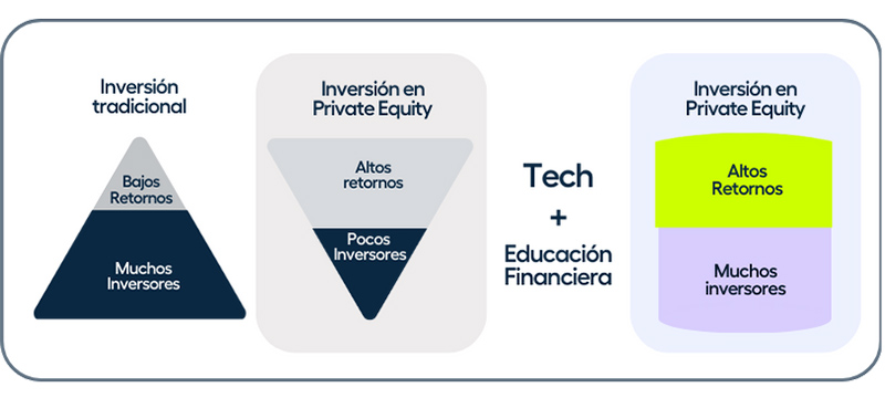 En este contexto, el papel de los facilitadores de inversión es fundamental en la inclusión financiera y la redefinición del acceso a la inversión al proporcionar soluciones digitales innovadoras que permiten la inversión en mercados privados 100% online, en producto de altísima calidad y a todo tipo de inversores. Acompañado de un fuerte compromiso con la formación de los minoristas invirtiendo en recursos educativos de calidad sobre los beneficios y riesgos de la inversión en private equity.
