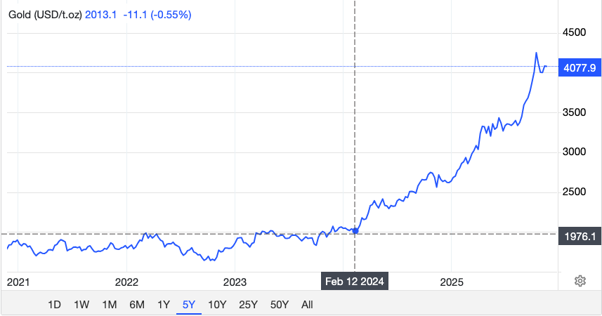 El oro mantiene una senda claramente alcista desde febrero de 2024, con una revalorización cercana al 110% en este periodo. El movimiento coincide con tensiones fiscales, tipos reales moderados y un renovado interés institucional. Al mismo tiempo, las principales mineras auríferas muestran un comportamiento sólido, apoyado en márgenes altos y balances más disciplinados.