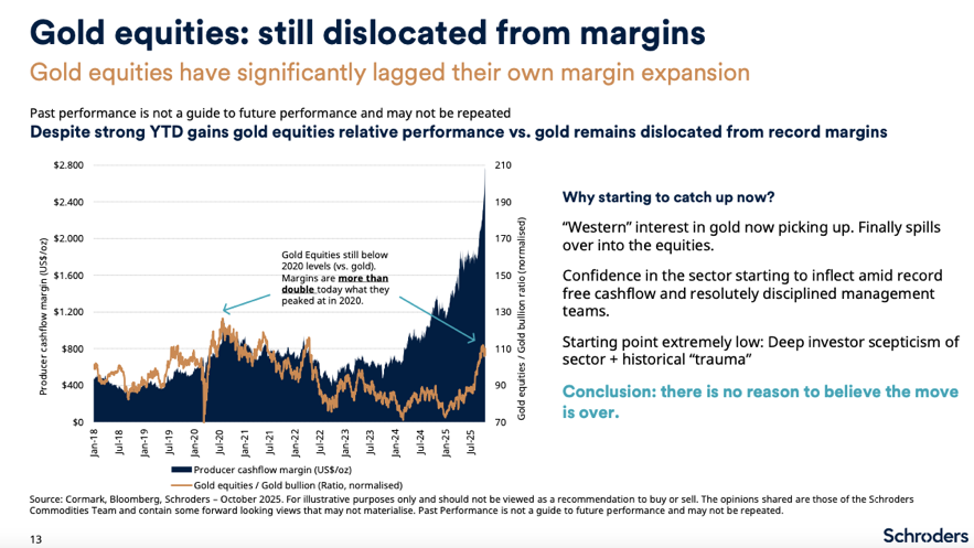 - Mensaje para clientes: las mineras tienden a ofrecer una beta superior al oro, por lo que pueden amplificar la siguiente fase del ciclo aurífero.
