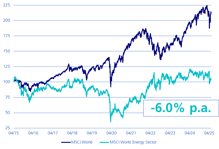 Guardando al passato, emergono indicazioni interessanti. Prendiamo il settore petrolifero: nonostante lo slancio politico ricevuto negli anni, ha sottoperformato in media il mercato globale di oltre il 5% all’anno negli ultimi tre anni, e di circa il 6% su dieci anni, secondo i dati MSCI. E ciò malgrado i massicci sussidi pubblici, pari a circa 7.000 miliardi di dollari in dieci anni, secondo il FMI.