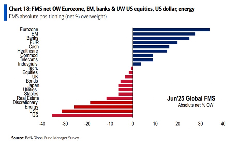 O mais recente inquérito a gestores publicado pelo BofA Securities revela uma certa continuidade face aos resultados verificados nos meses anteriores. Os gestores continuam a aumentar progressivamente a sua exposição a ações e, quando o fazem, mantêm a sua preferência por ações europeias em detrimento das norte-americanas, ainda que de forma menos acentuada do que no passado.