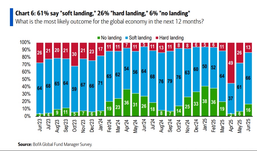 Relativamente à perceção dos gestores sobre a situação económica, nota-se um ligeiro aumento do otimismo face aos meses anteriores. Atualmente, apenas 46% dos gestores espera uma fraqueza económica – exatamente metade dos que tinham essa perspetiva há um mês. E, entre os que continuam a prever uma desaceleração da economia, a grande maioria acredita que será mais um soft landing do que um hard landing.